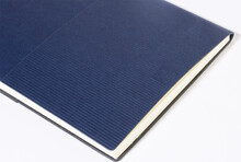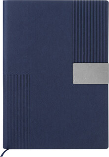 Blok A5 s recyklovanou PU kůží s pruhovanou dekorací a kovovou destičkou pro logo. Se záložkou a 80 linkovanými listy z recyklovaného papíru.