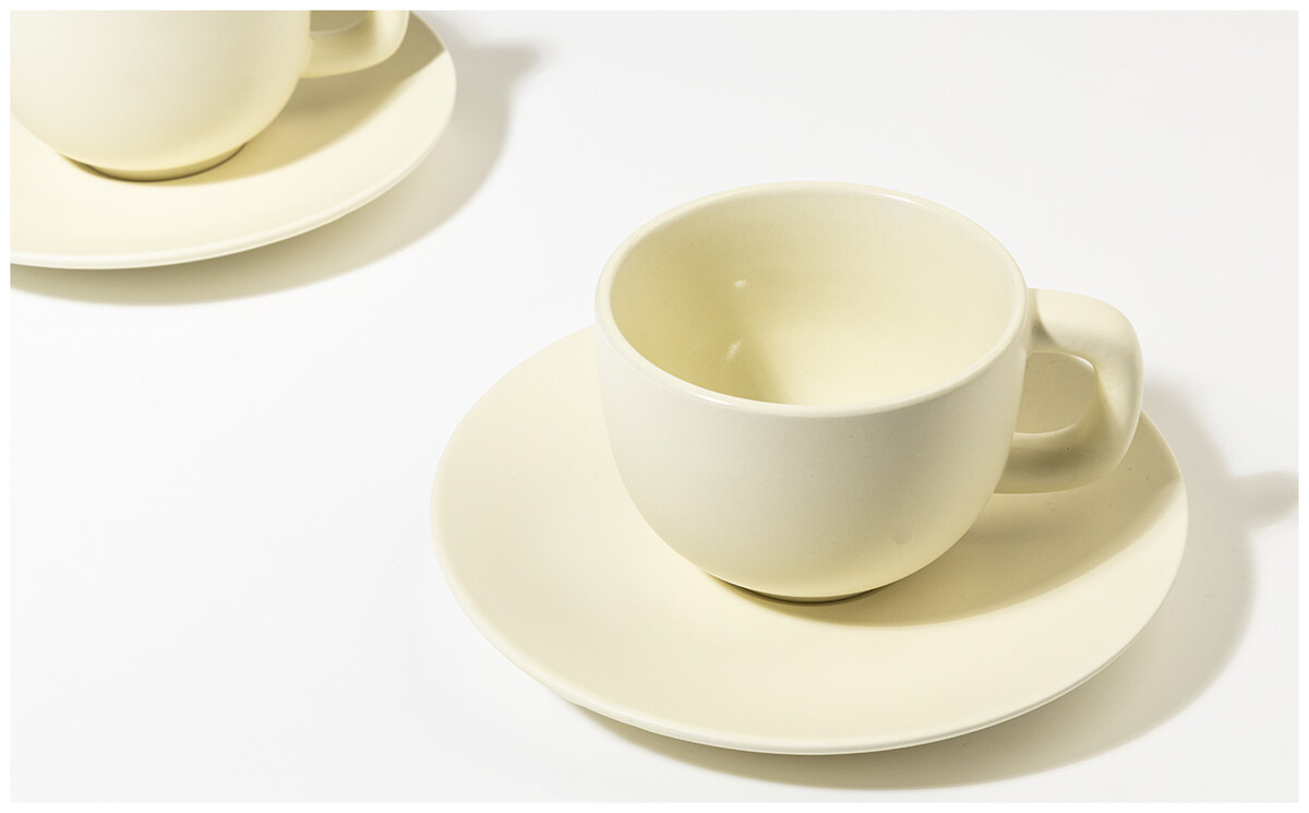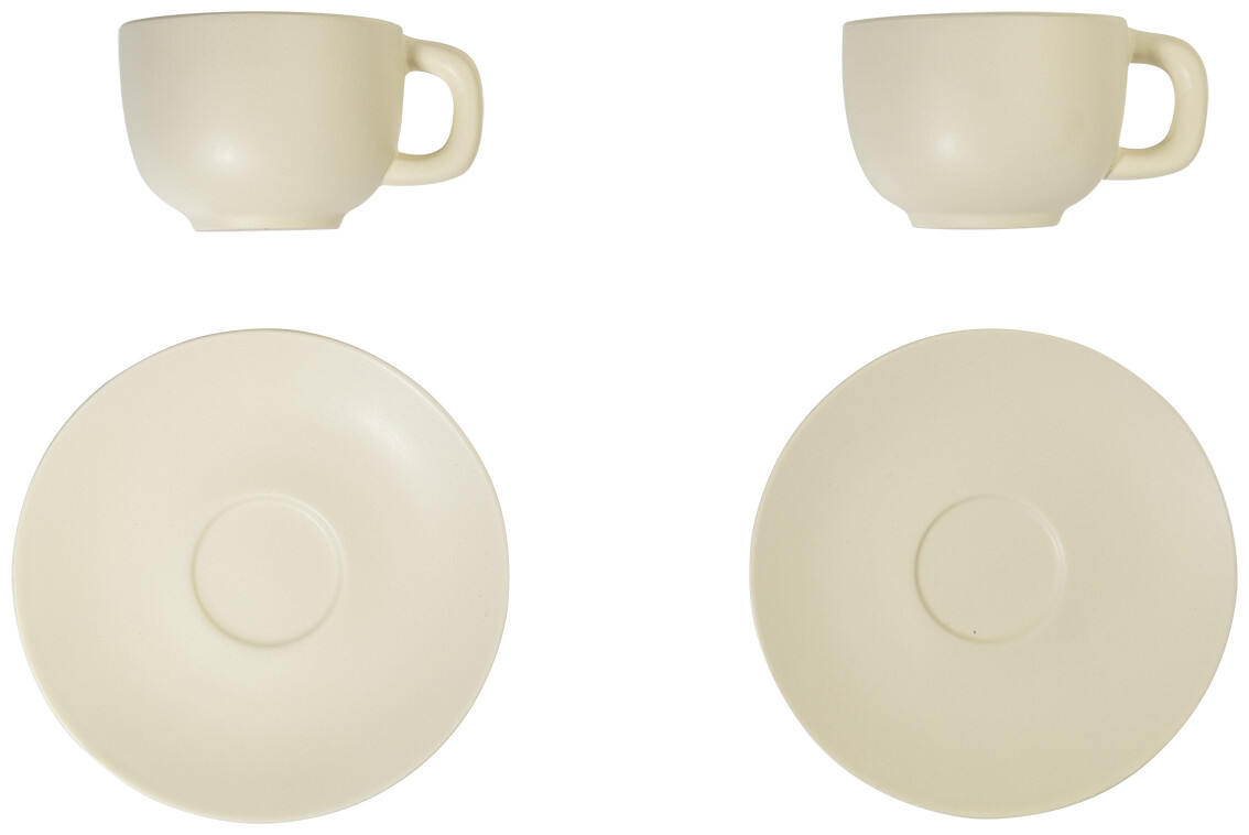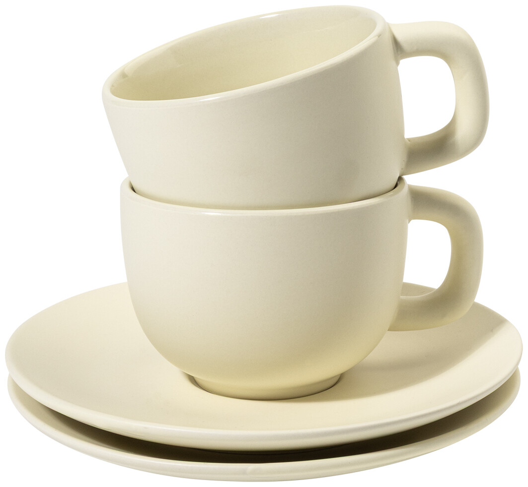 Vysoce kvalitní keramická sada šálků na cappuccino se 2 šálky a podšálky. S matnou vnější a lesklou vnitřní povrchovou úpravou. 200 ml. V kraftové papírové krabici.