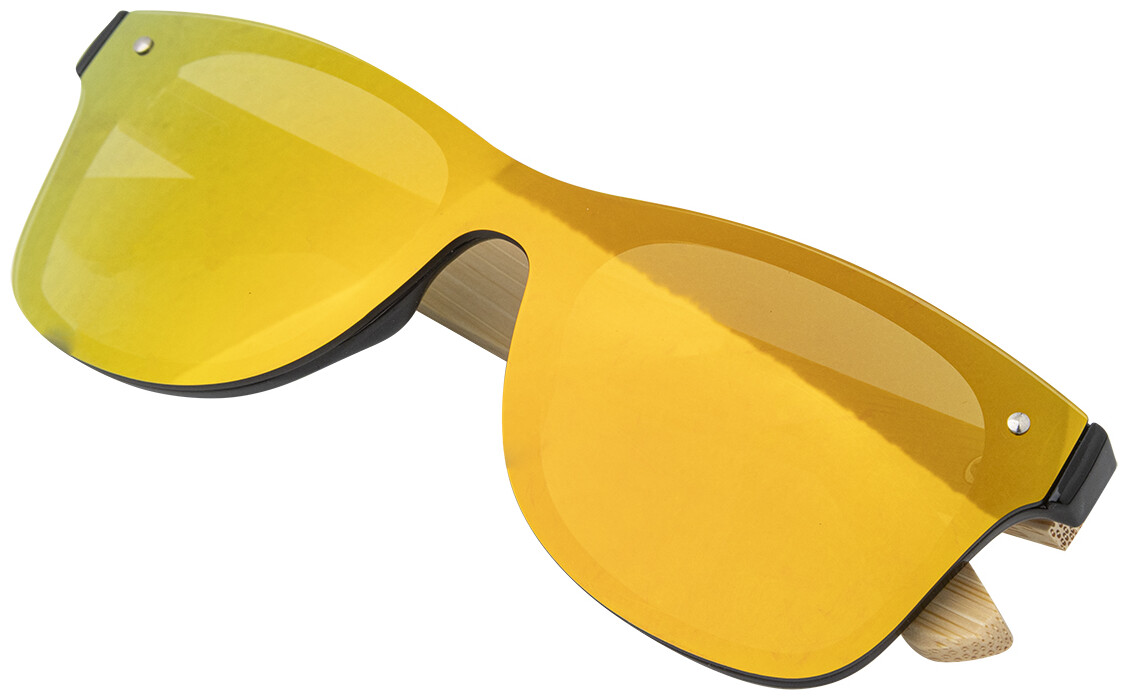 Sluneční brýle se zrcadlovými jednodílnými čočkami a bambusovými nožičkami. S ochranou UV 400.