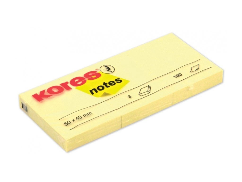 BLOČEK SAMOLEPÍCÍ KORES žlutý 50 x 40 mm/3x100 listů