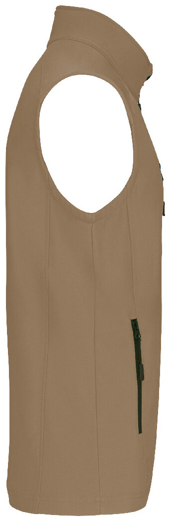 Třívrstvá, prodyšná, větru a voděodolná softshellová vesta na tělo se zipem a náprsními a bočními kapsami na zip. S prodyšnou střední vrstvou a vnitřní vrstvou z micro polar fleecu. Materiál: 95 % polyester a 5 % elastan, 300 g/m2. Výrobek značky Kariban.