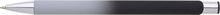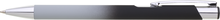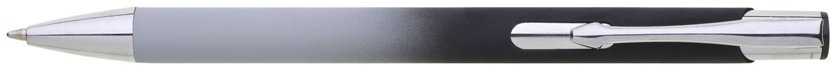 Hliníková propiska se stříbrnými doplňky a měkkým pogumovaným soft povrchem v šedo-černém přechodu. Náplň velkoobsahová, modře píšící.