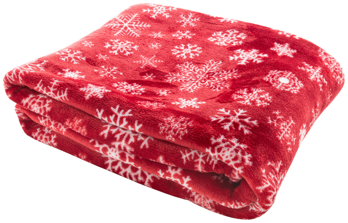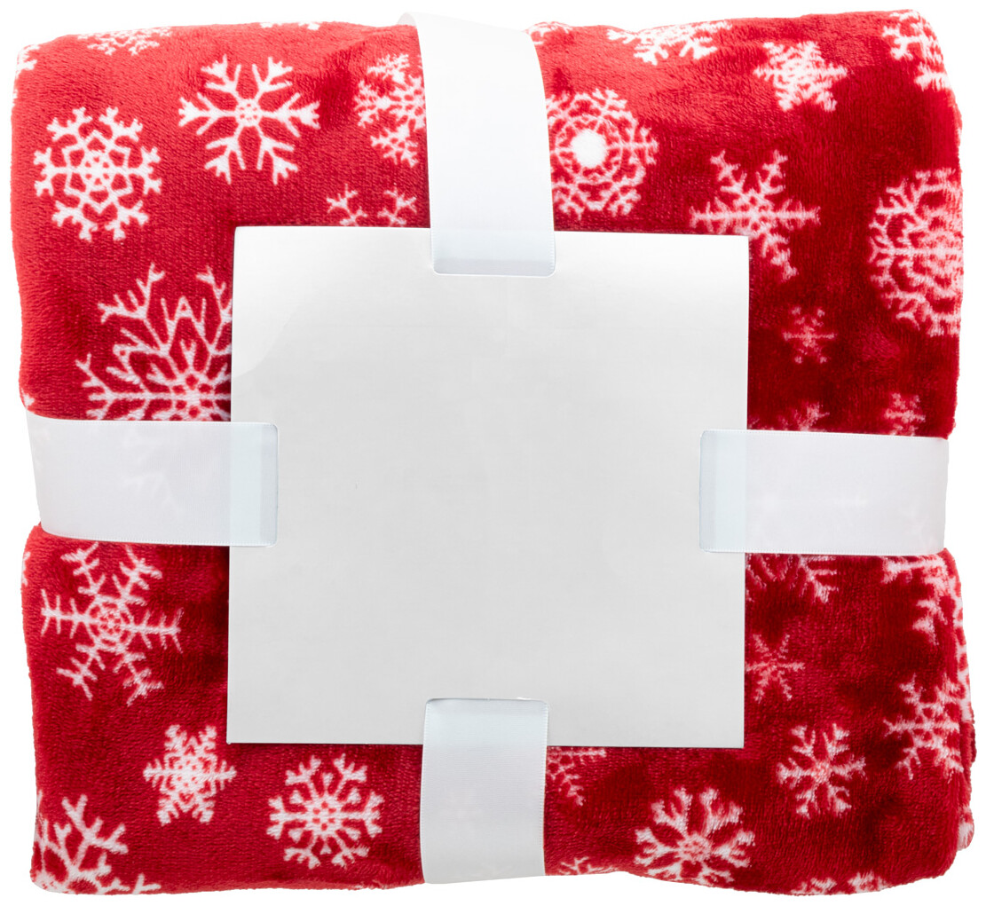RPET flanelová fleecová vánoční deka, 260 g/m2. S potisknutelnou papírovou kartou a stuhou.
