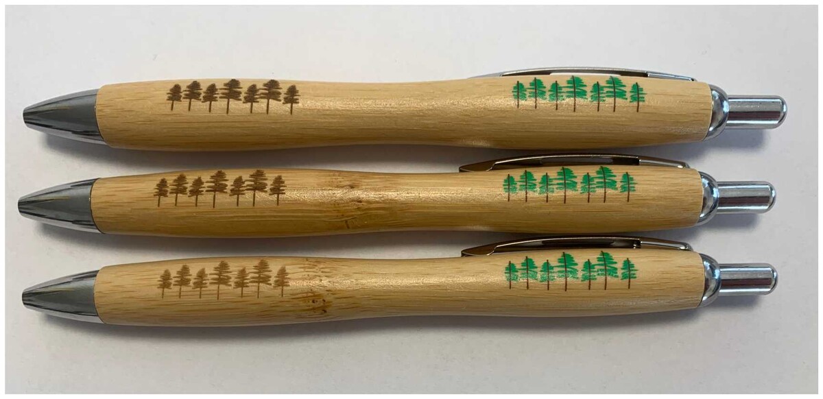 Bambusová propiska LESNA s chromovými doplňky. Náplň velkoobsahová, modře píšící.