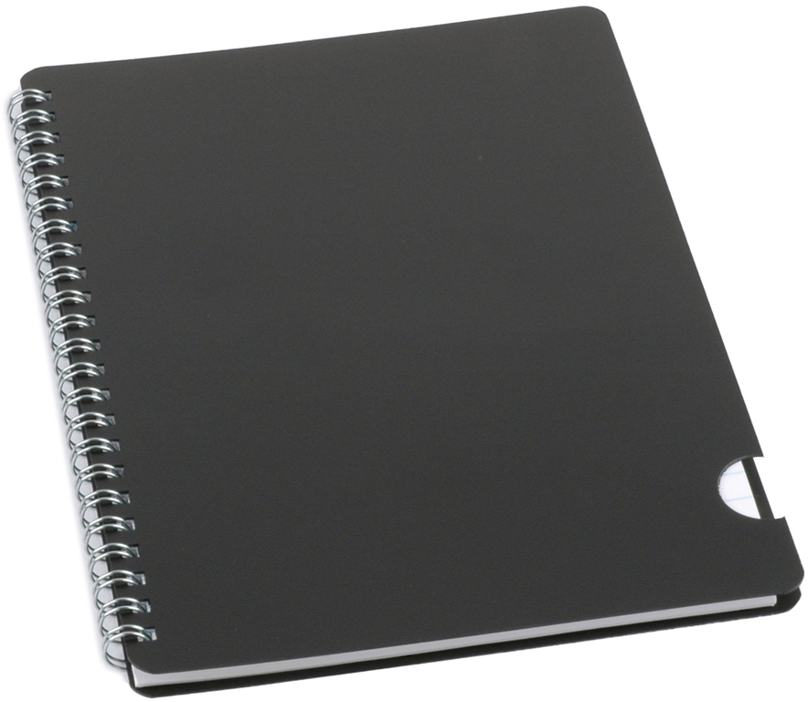 Blok s boční kroužkovou vazbou TWIN WIRE a plastovými deskami. 60 listů, linkovaný, barva desek: černá, formát: A5.
