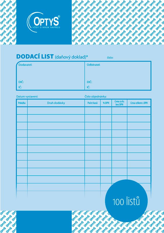 DODACÍ LIST OPTYS A5/100l