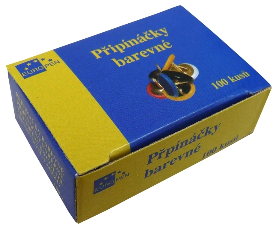 Barevné připínáčky Europen, balení: 100 ks, barevné potahované.