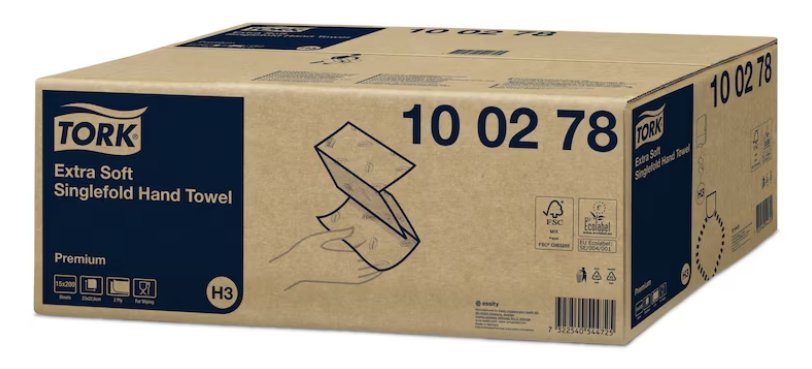 | 1740505 | Papírové ručníky Singlefold Premium Tork 100278, bílé, systém H3 | 119,43 Kč | 144,51 Kč | 15 bal | |||