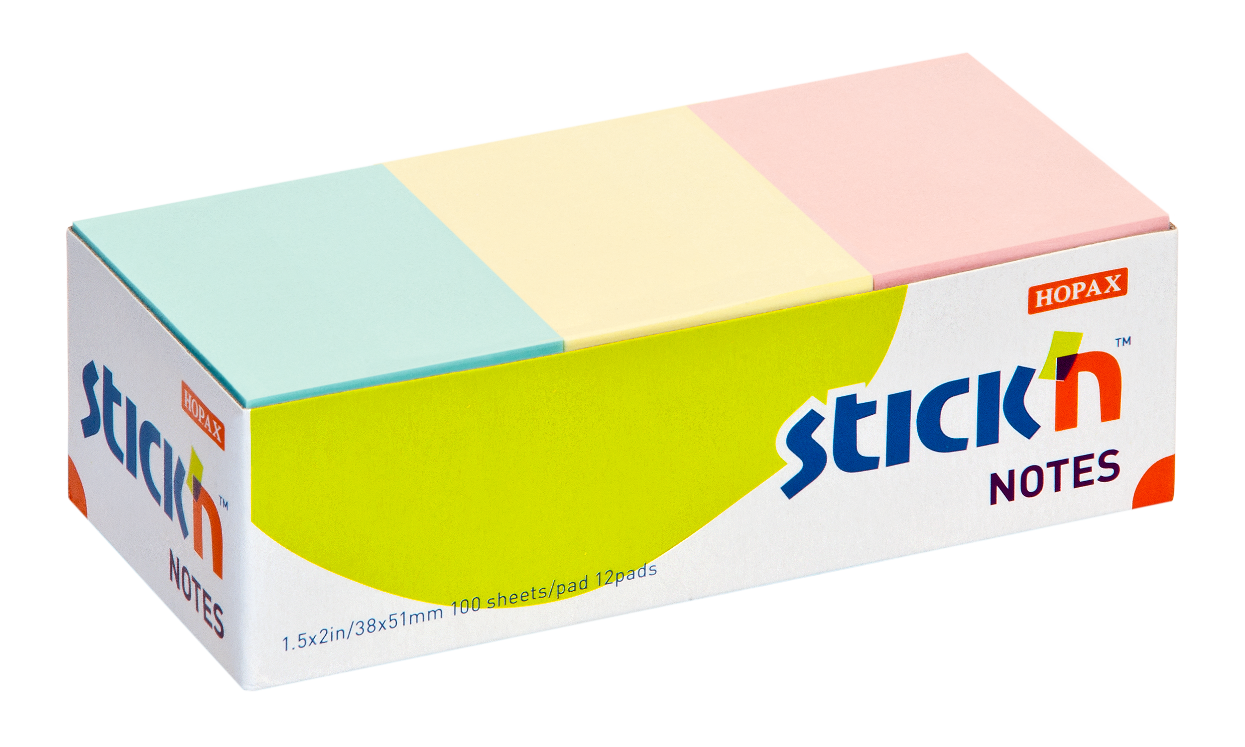 Samolepicí bloček Stick'n by Hopax, 38 x 51 mm, pastel mix, 12 x 100 lístků