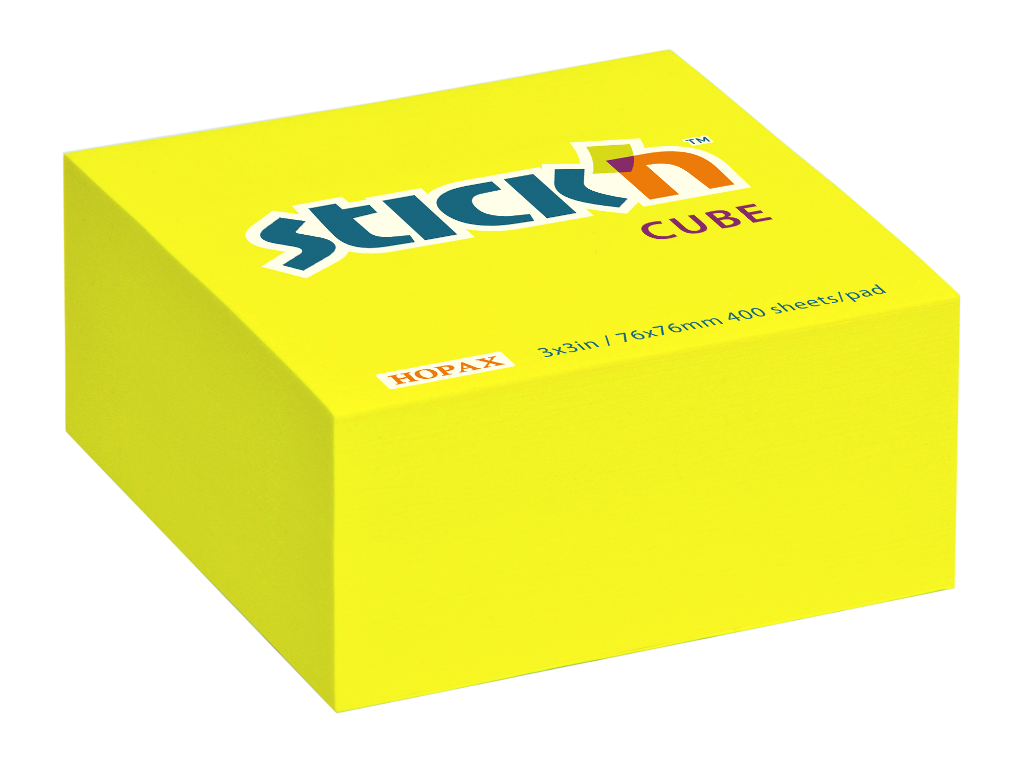 Samolepicí bloček kostka Stick'n by Hopax, 76 x 76 mm, neon žlutý, 400 lístků