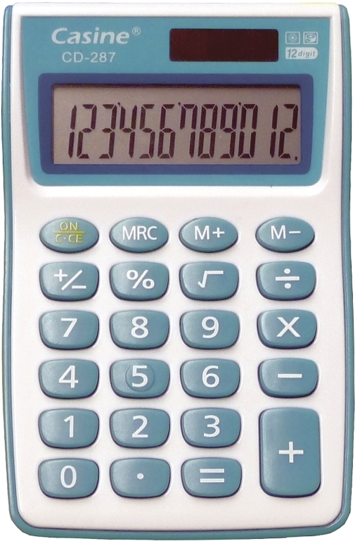 Stolní kalkulátor Casine CD-287, oceníte jak v kanceláři tak i ve škole. Disponuje velkým 12-místným displejem, solárním dobíjením a klávesnicí s velkými tlačítky v barevném kontrastním provedení pro pohodlné zadávání. Nechybí ani funkce jako automatické vypnutí, výpočet %, odmocniny, +/-, paměť.