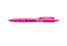 Jednorázové kuličkové pero s mačkacím mechanismem. Pogumovaný úchop neklouže, zajišťuje pevné a příjemné držení. Odolný niklový hrot široký 1 mm a kvalitní plastové tělo. Barva těla pera je shodná s barvou náplně. Široký výběr barev. Nízká viskozita inkoustu, díky které kulička pera lépe klouže po papíře, podobně jako gelové náplně, skvělé psací vlastnosti. Stopa 0,7 mm. Barva: růžová.