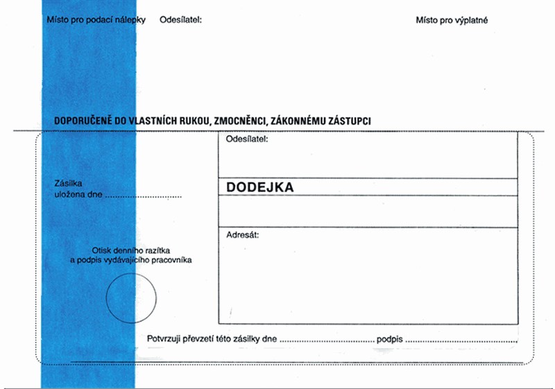 Poštovní obálky s dodejkou se mohou v pruběhu platnosti katalogu měnit dle legislativních změn.