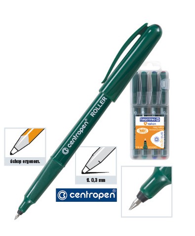 Roller v novém, trojhranném designu s ERGO držením! Je osazený velmi jemným kovovým hrotem s kuličkou z karbidu wolframu. Plněný je speciálním nevysychavým inkoustem. Vydrží i 14 dní bez chránítka a bude psát! Šíře stopy 0,3 mm, délka stopy až 2200 m. Určený k nejširšímu použití.