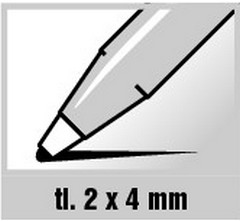 Křídový popisovač. Stopa 2 x 4 mm. Popisovač pro psaní na všech nesavých a hladkých materiálech jako je sklo, plast atp. Ideální na upoutávky, dekorace, sdělení na výlohy prodejen, menu v restauracích, na skla automobilů. Zaschlý popisovač je odolný dešti. Stopa se maže pomocí vlhké látky či houbičky.