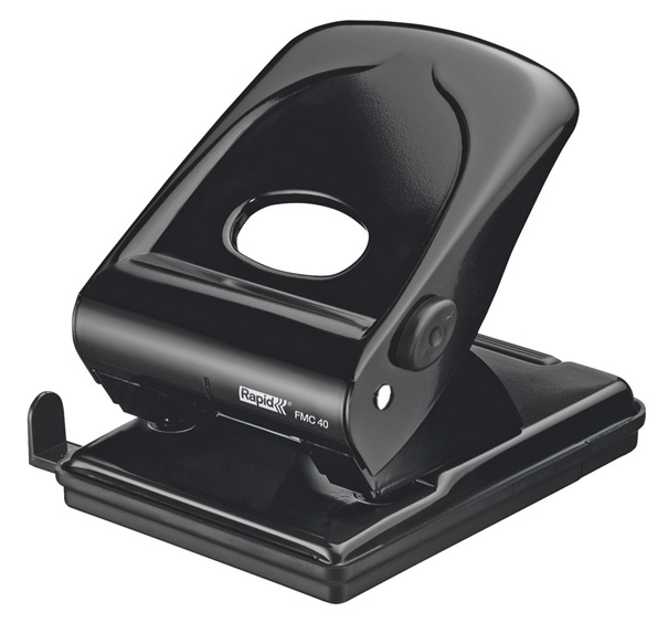 Výkonná kovová děrovačka s uzamykatelným ramenem pro snadné skladování. Vhodná do kanceláře. Kapacita: 40 listů. Rozteč otvorů: 7,5 cm. Průměr otvorů: 0,55 cm.