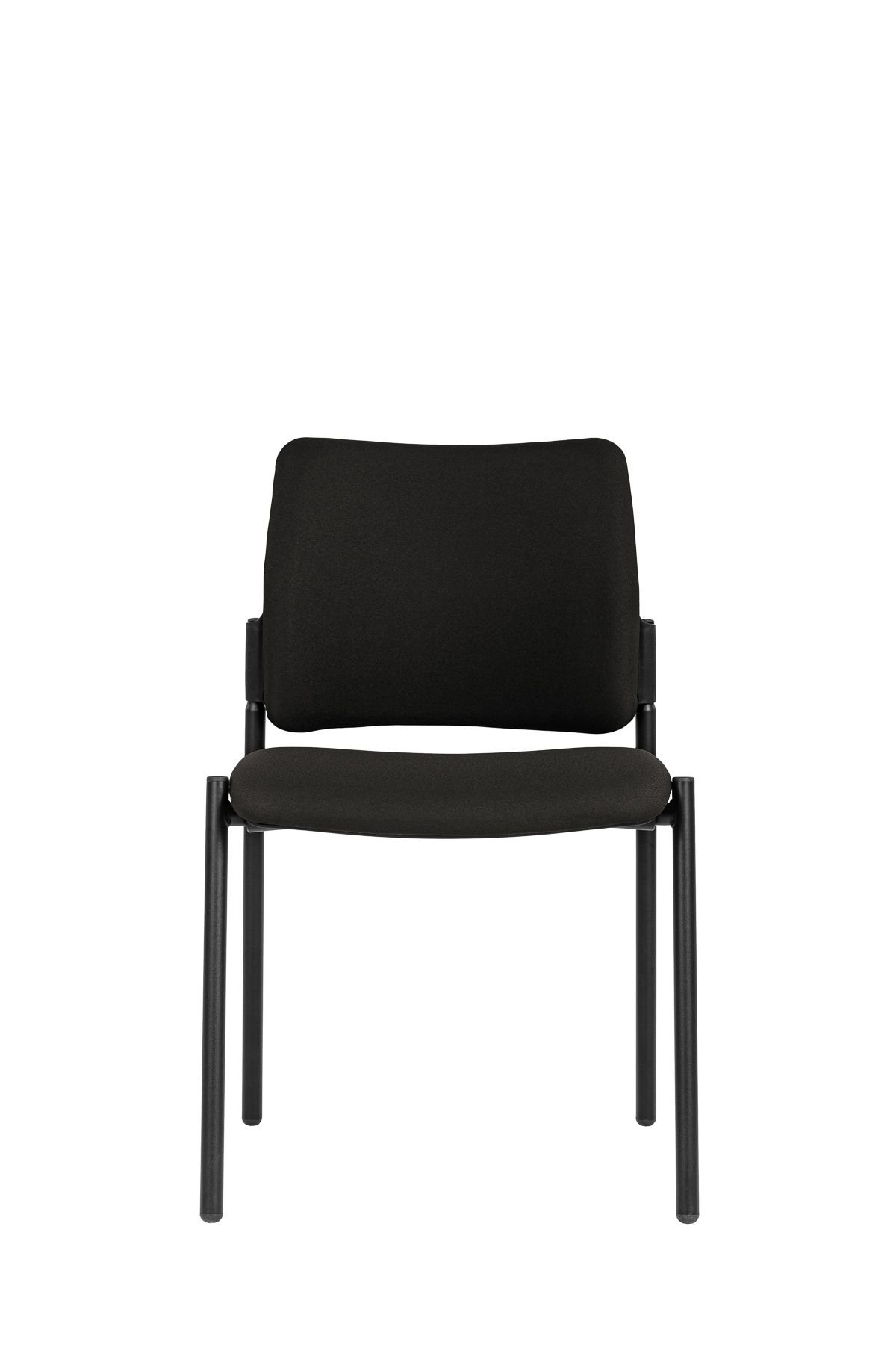 moderní jednací židle bez područek, čalouněný sedák a opěrák, ocelový rám lakovaný černě, stohovatelnost 5 kusů, nosnost 120 kg, záruka 36 měsíců, český výrobek