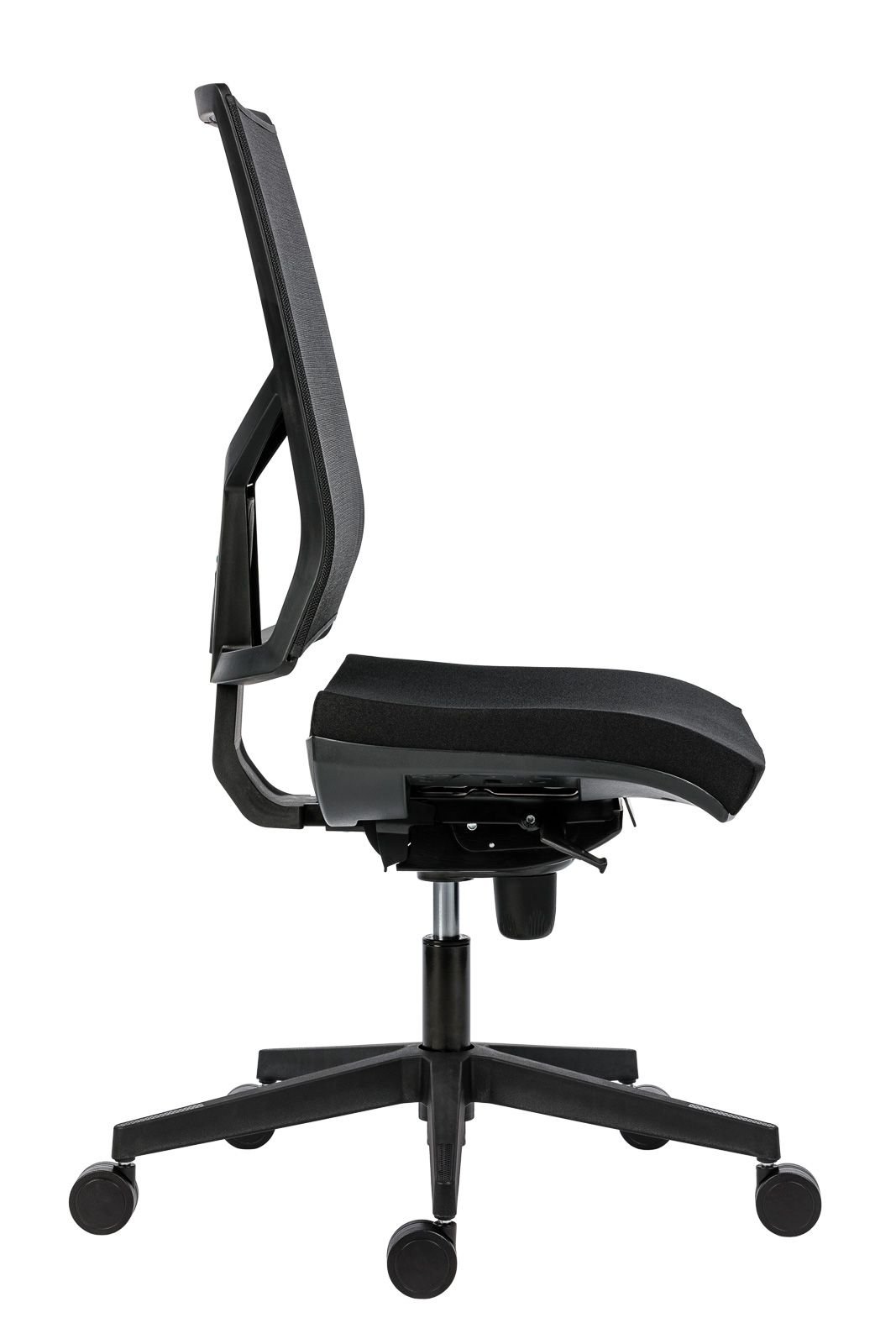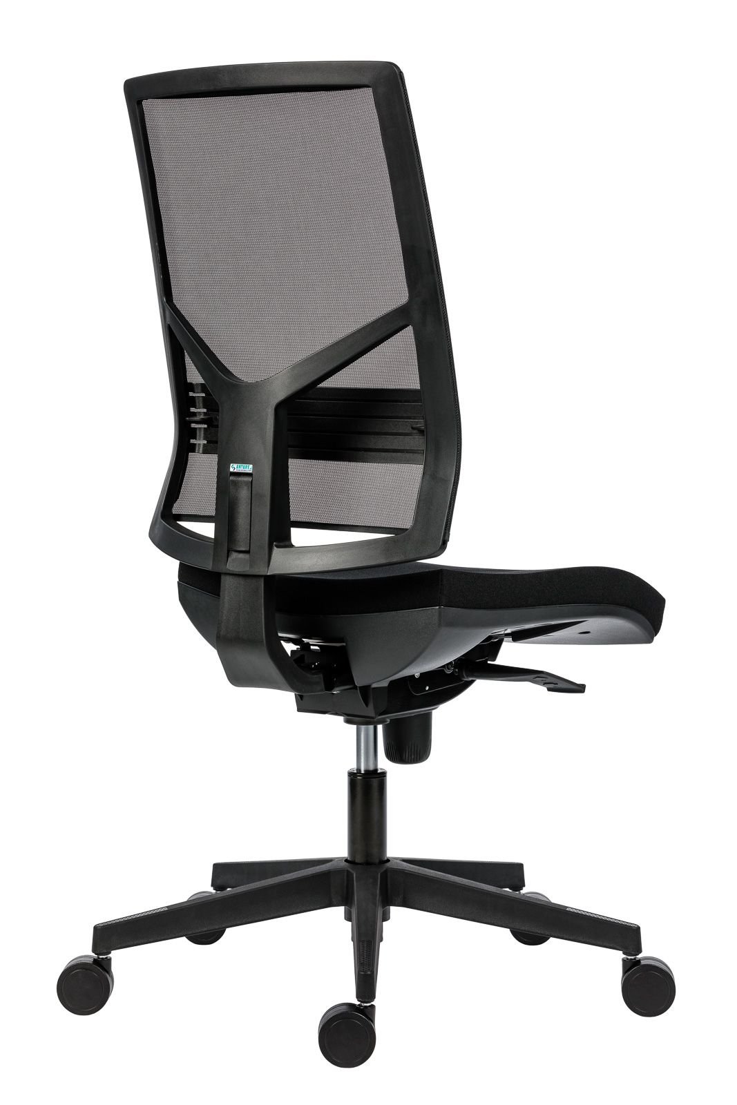 židle s vysokým síťovaným opěrákem a výškově nastavitelnou bederní výztuhou, volitelný podhlavník se sítí nebo čalounem výškově a uhlově nastavitelný, možnost doplnění ramínka na oděv, nastavení výšky opěráku s uzamykáním, čalounění ze studené pěny, nový design sedáku s výrazným zaoblením přední hrany a robustní výškou pro maximální pohodlí synchronní mechanismus s čtyřnásobnou aretací, automatickým nastavením síly protiváhy a nastavením hloubky sedáku, plastová báze, kolečka pr. 60 mm pro měkké podlahy, volitelné područky, nosnost 150 kg, český výrobek, záruka 60 měsíců