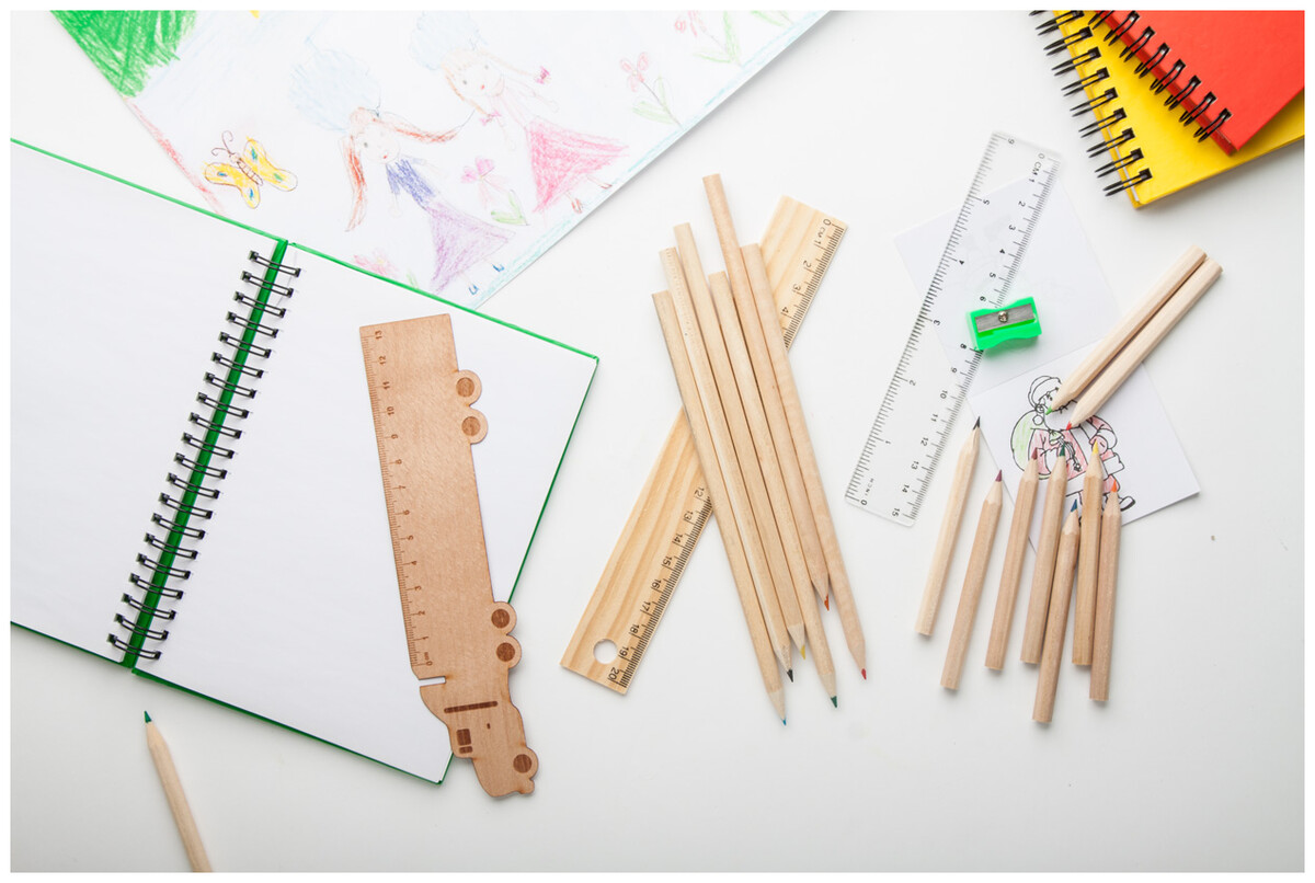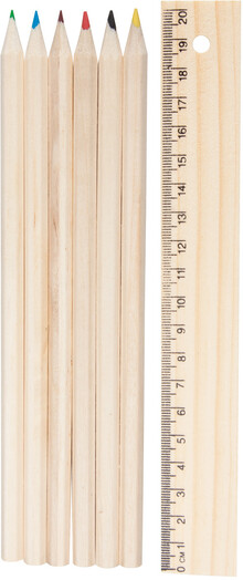 6-ti dílná sada pastelek v dřevěné krabičce s 20 cm pravítkem.