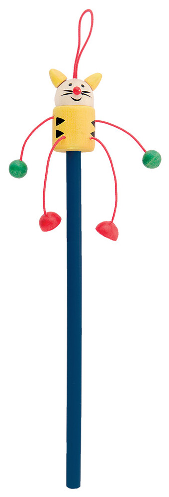 Dřevěná tužka s barevnou figurkou, neořezaná.