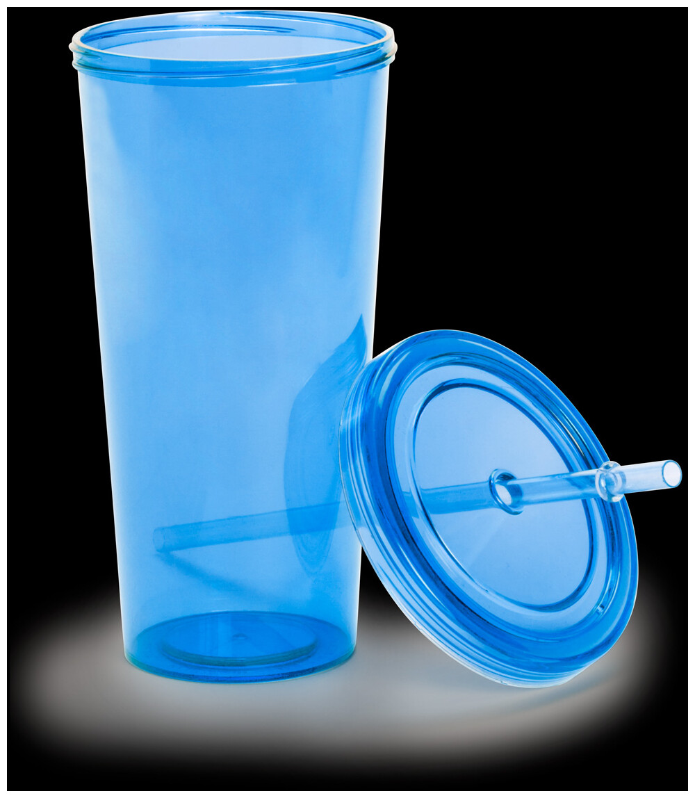 Barevný, průhledný plastový kelímek s brčkem, 750 ml.