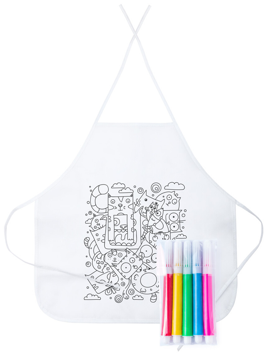 Zástěra pro děti z netkané textilie na vybarvení, s 5 fixami a vyobrazeným daným motivem.