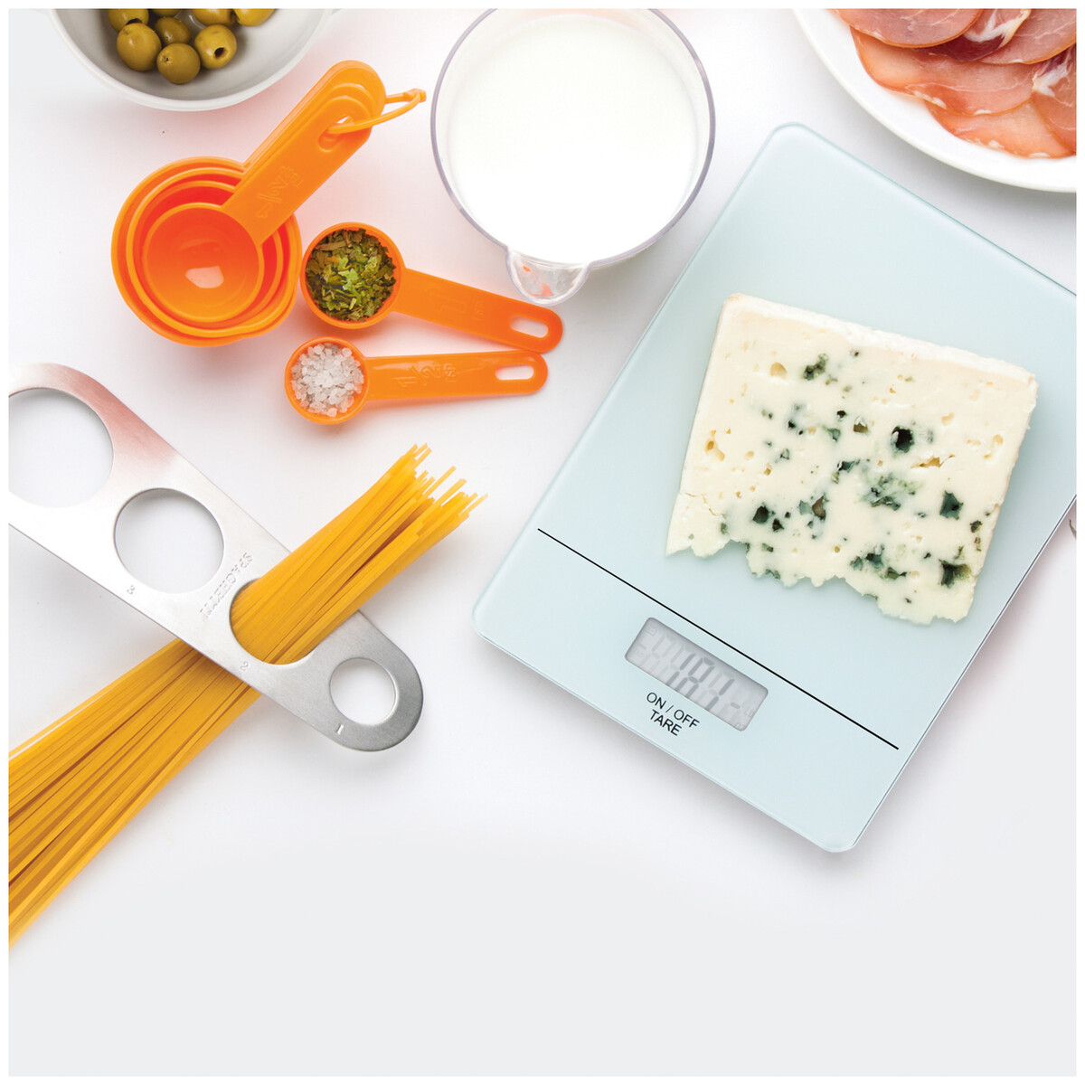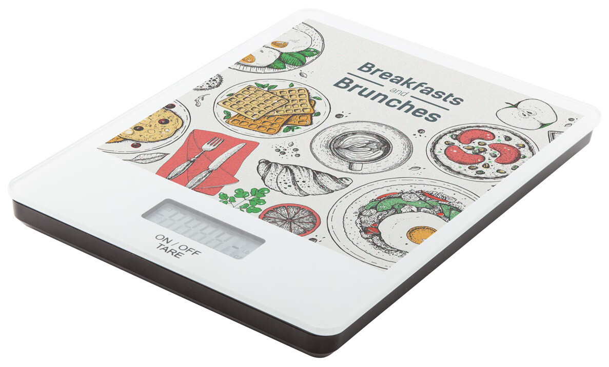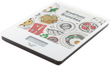 Digitální kuchyňská váha s povrchem z tvrzeného skla. Kapacita: 5kg, stupnice 1g, měrné jednotky g/oz. Dodáváno bez 2 AAA baterií.