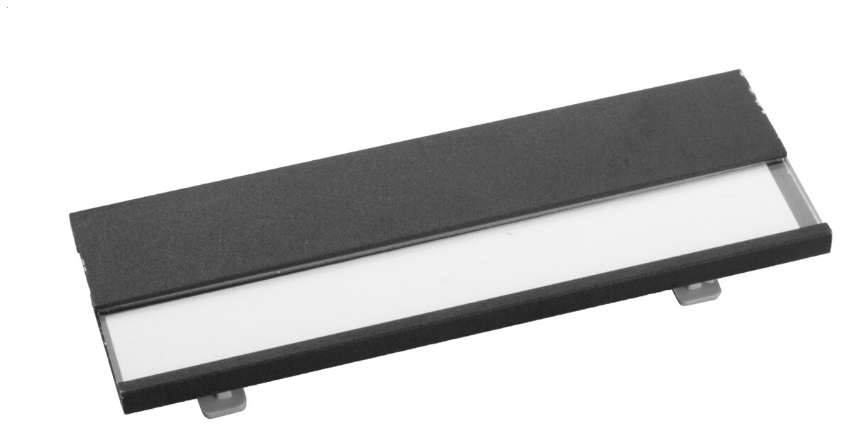 Hliníková jmenovka s vyměnitelnými papírovými a plastovými díly.