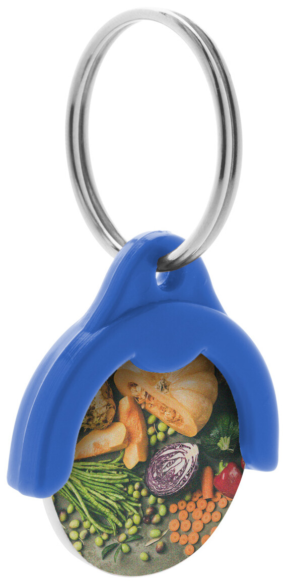 Plastový přívěšek na klíče s plnobarevným potiskem žetonu do vozíku. Cena zahrnuje UV LED tisk na 1 straně mince, nezahrnuje tiskovou přípravu. Min. mn.: 200 ks.