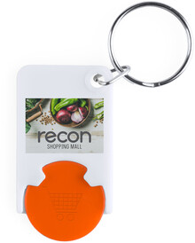 Plastový přívěšek na klíče se žetonem do nákupních vozíků.