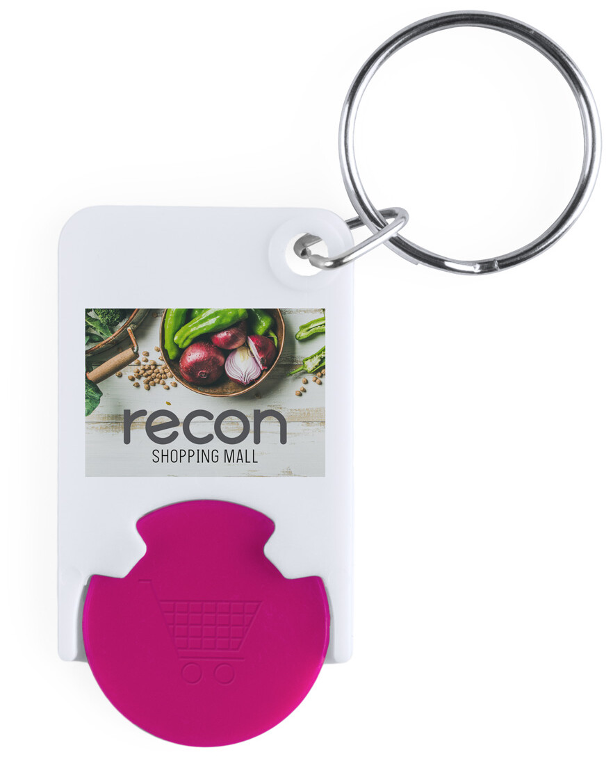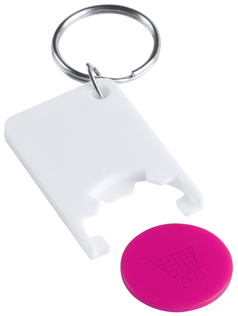Plastový přívěšek na klíče se žetonem do nákupních vozíků.