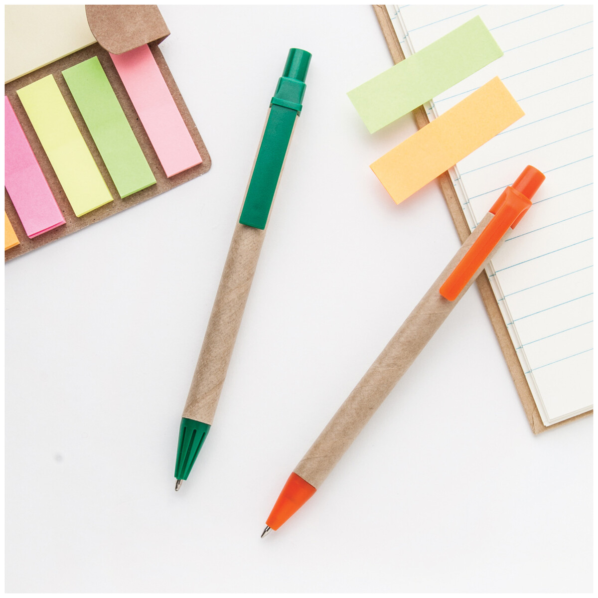 Kuličkové pero vyrobené z recyklovaného papíru a plastu s černou náplní.