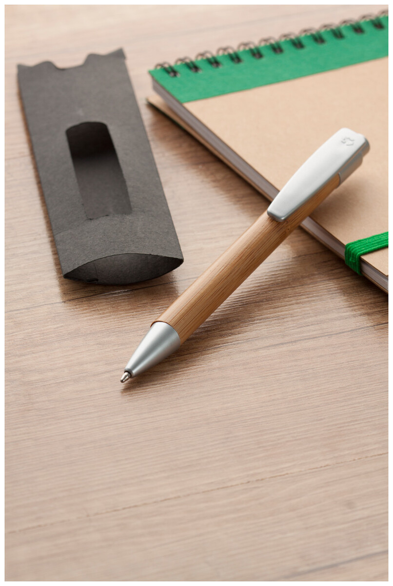 Bambusové kuličkové pero v černé dárkové krabičce. Dodává se s modrou náplní.