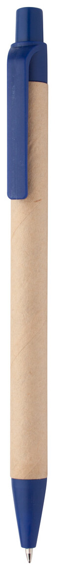 Recyklovatelné papírové kuličkové pero s modrou náplní.