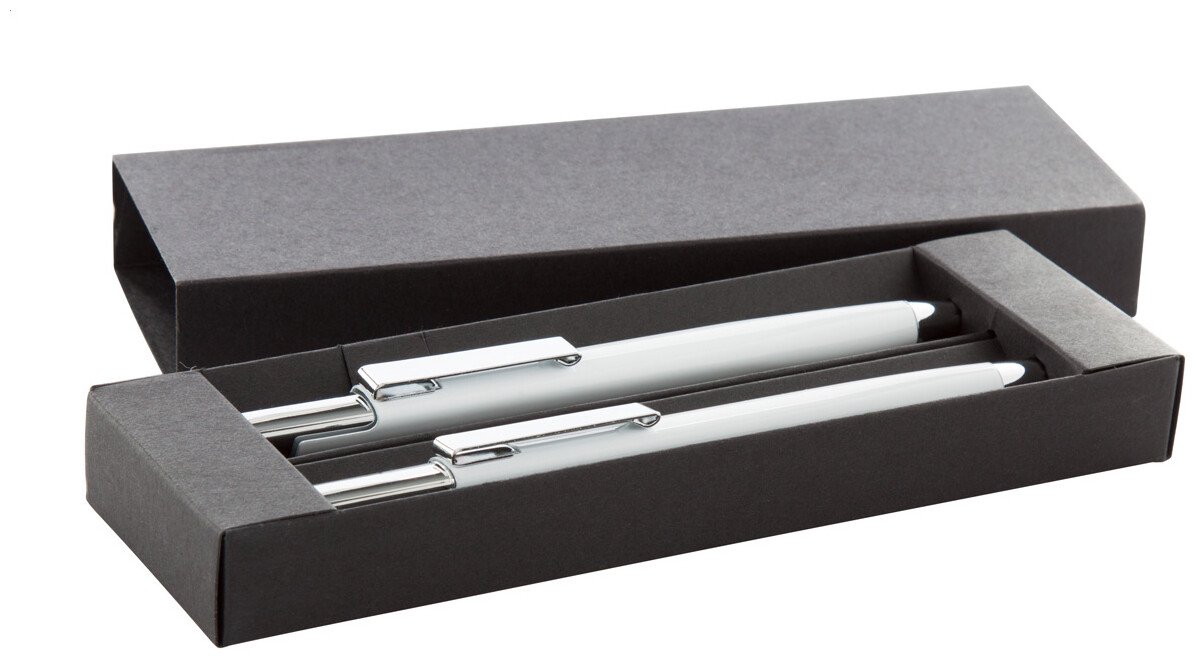 Hliníková sada kuličkového pera a mechanické tužky v černé dárkové krabičce. Modrá náplň, 0,7 mm tuhy.