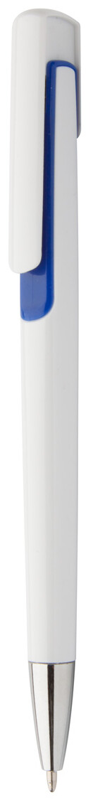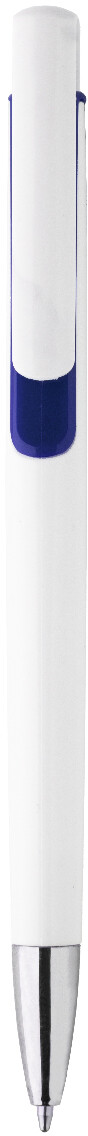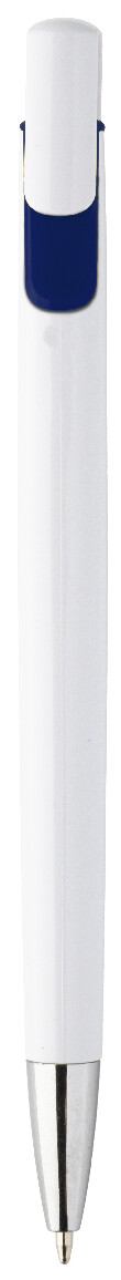 Plastové kuličkové pero s barevnými doplňky a chromovou špičkou. Dodáváno s modrou náplní.