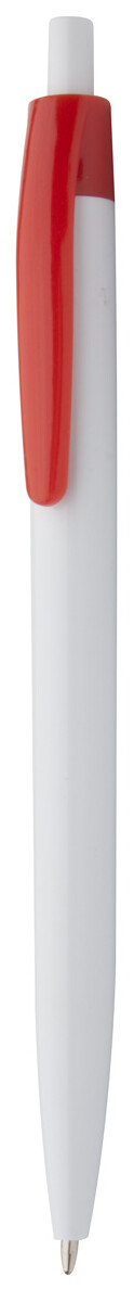 Plastové kuličkové pero s bílým tělem a barevným klipem, s modrou náplní.
