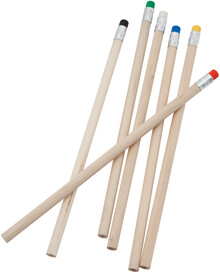 Tužka z přírodního dřeva s barevnou gumou. Dodává se neořezaná.