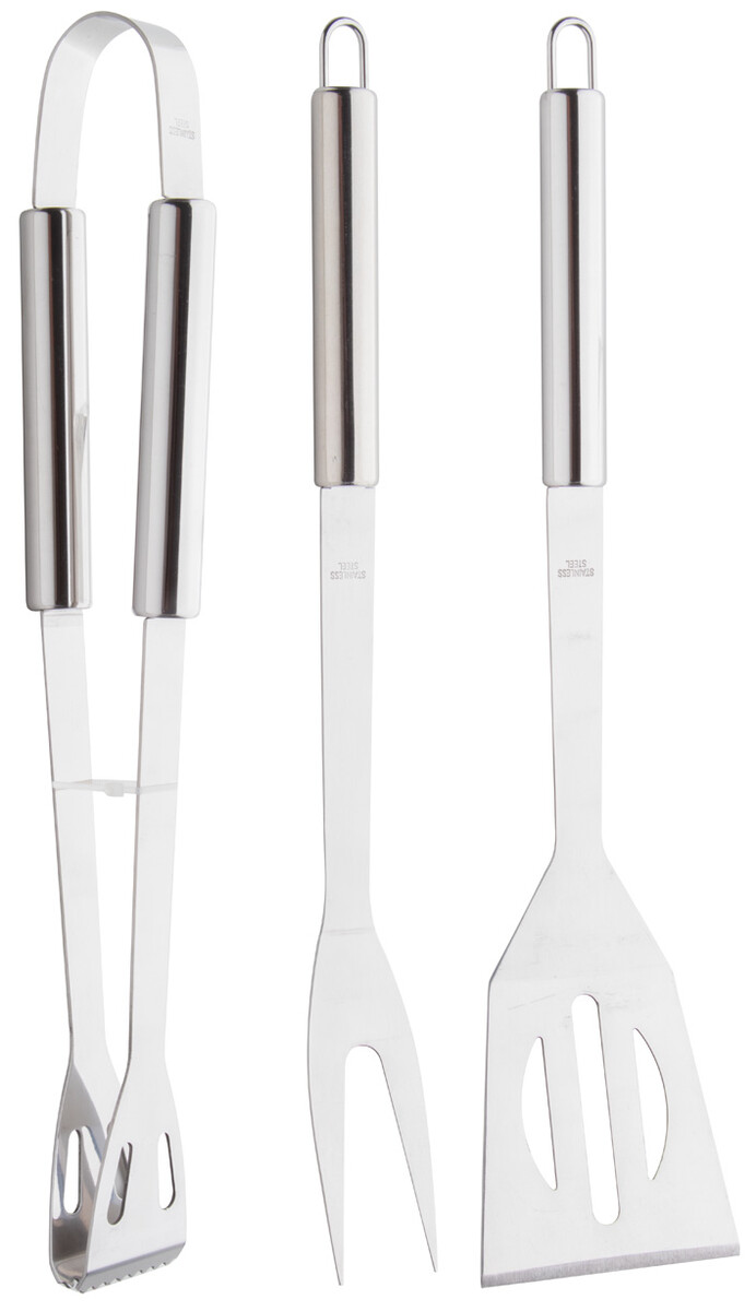 3 ks - sada na grilování z nerezové oceli (vidlička, lopatka a kleště) nylonová taška se zipem.