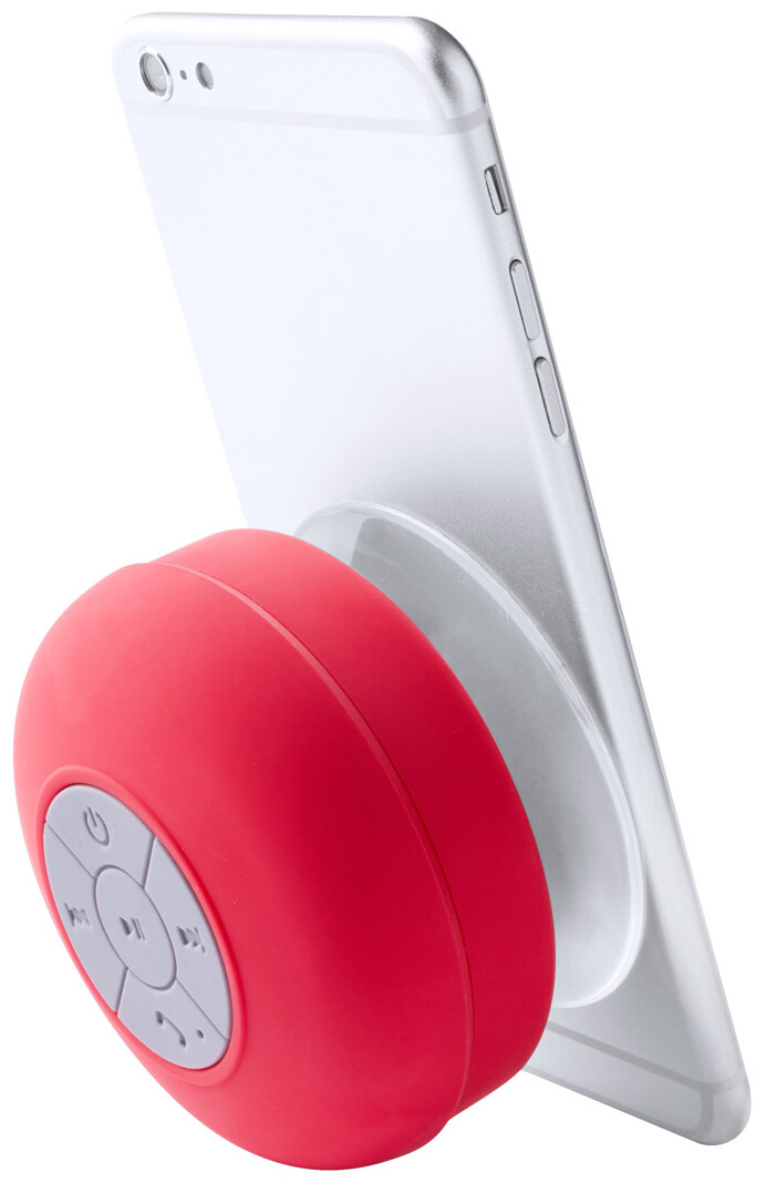 Bezdrátový reproduktor s pogumovaným krytem a velkou přísavkou. S funkcí hands-free volání a vestavěnou dobíjecí baterií. Včetně nabíjecího kabelu USB.