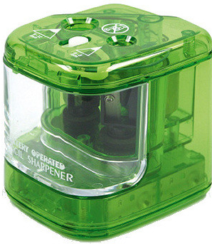 Elektrické ořezávátko s pohonem na baterie pro běžné tenké i JUMBO tužky (pastelky) průměr otvorů 8 mm a 13 mm. Lze napájet i adaptérem 955541 (není součástí balení). Není vhodné pro pastelky Koh-i-noor Triocolor silné..