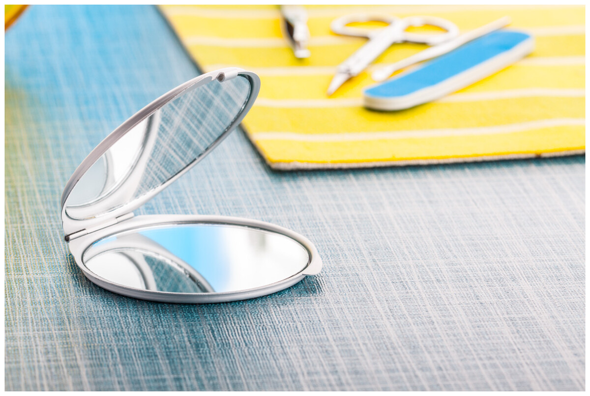 Hliníkové kapesní zrcátko (klasické a zvětšující).