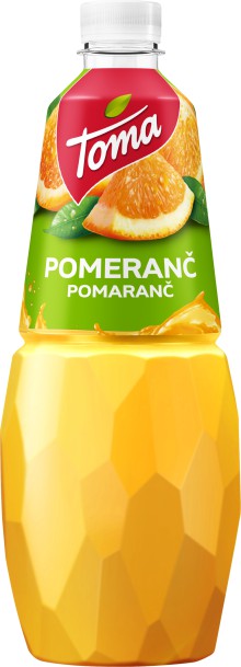 Jsem váš džus s bohatou chutí pomeranče. Již jednou sklenkou pokrývám vaši denní potřebu vitaminu C. Nemám v sobě žádné umělé ani konzervační látky. Přináším vám tak lahodnou chuť pro vaše každodenní osvěžení. Vaše TOMA. Objem: 1 l.