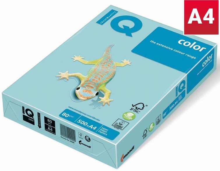 Barevný papír IQ MB30, A4, 80g, pastelová středně modrá, 1 balení, 500 listů.