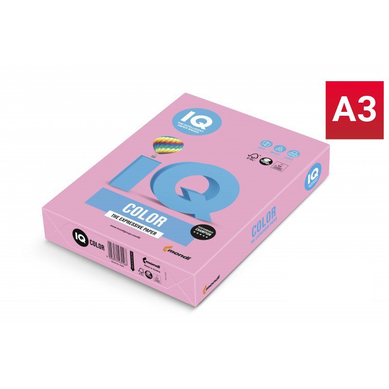 Barevný papír IQ /O25, A3, 160g, pastelová růžová, 1 balení, 250 listů. Papír velkého formátu A3.