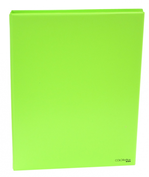 Poznámkový blok se čtyřkroužkovou mechanikou, 100 listů s linkami, materiál PVC. Formát: A4, barva obalu: zelená.