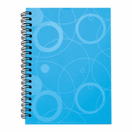 Kroužkový blok, desky PP, 70 listů s linkami a potiskem, papír 70 g, perforace, dvojitá Twin wire spirála. Formát: A5, barva: modrá.
