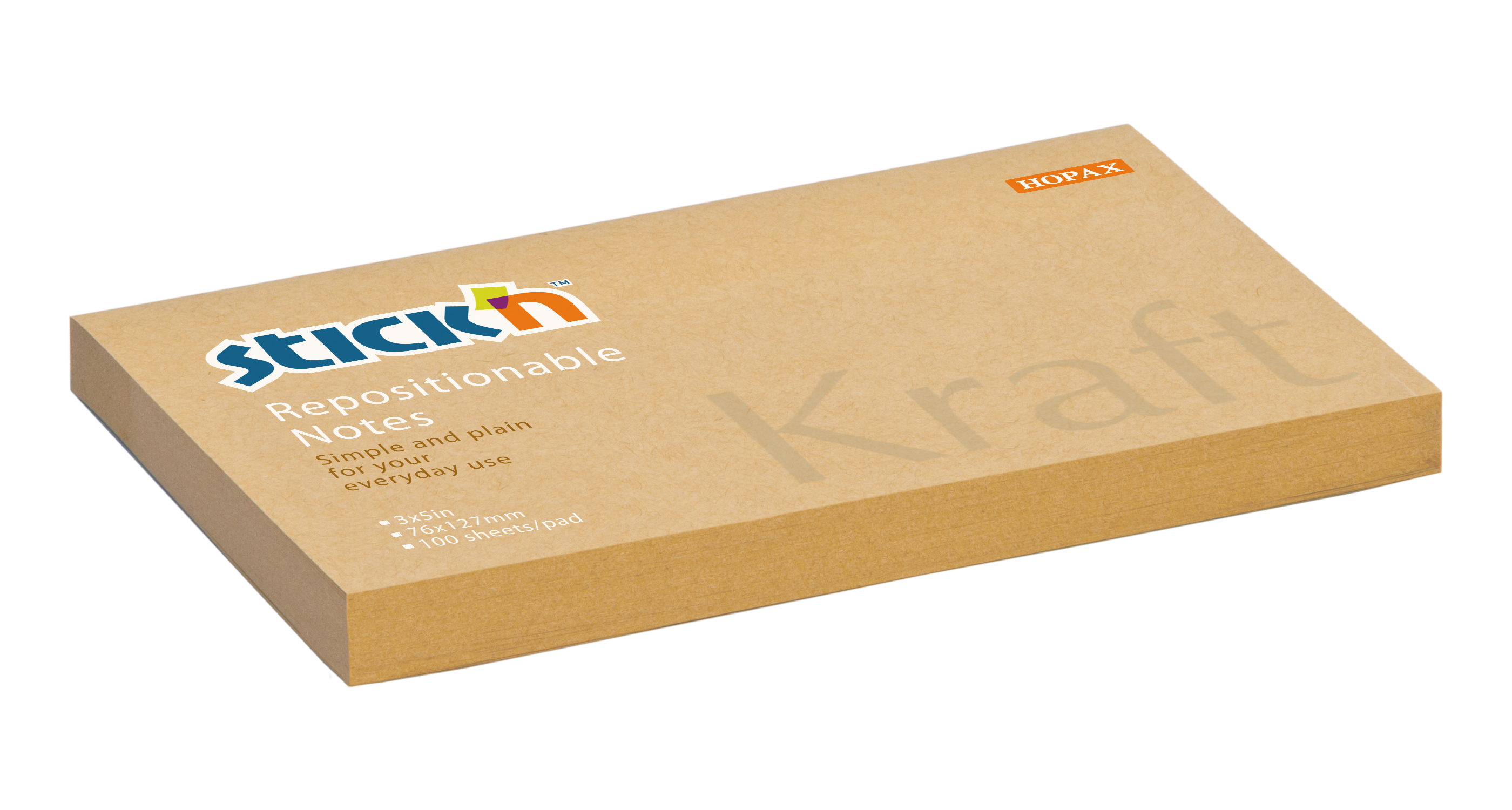 1722903 | Samolepicí bloček Stick'n by Hopax KRAFT, 76 x 127 mm, přír.hnědý, 100 lístků | 29,49 Kč | 35,68 Kč | 1 ks |