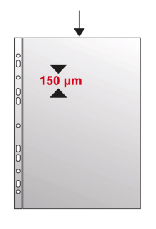 Obal „U s eurozávěsem a s palcovým výsekem“ formátu A4 ze silné čiré fólie 180 mic., netečná fólie vůči barvám. Vkládání na výšku. Balení 100 ks.