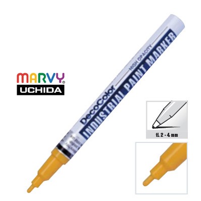 Průmyslový lakový popisovač s odolným kulatým hrotem 1-3 mm a kovovou kuličkou uvnitř. Vodě odolný, vhodný na dřevo, sklo, kov, elektrické součástky, porcelán, nebo automobilový průmysl.